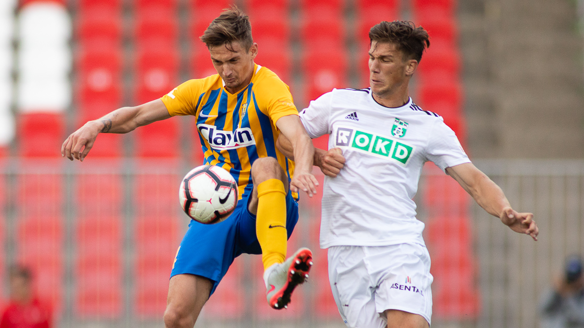 Pak si Hrabina narazil míč se Zapalačem, opavský bek pak posunul míč na úplně volného Žídka, jenže kapitán SFC zblízka těsně přestřelil karvinskou bránu. V závěru první půle mohla jít do vedení Karviná, ale střelu Čoliće na poslední chvíli uhasil Šrom.